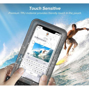 - Premium Transparent PVC Material The clear waterproof case is made of high-quality soft transparent PVC material. This random colorwaterproof pouch is sensitive for you to taking pictures, videos and checking emails without remove the waterproof phone bag, but NOT for touch ID fingerprint